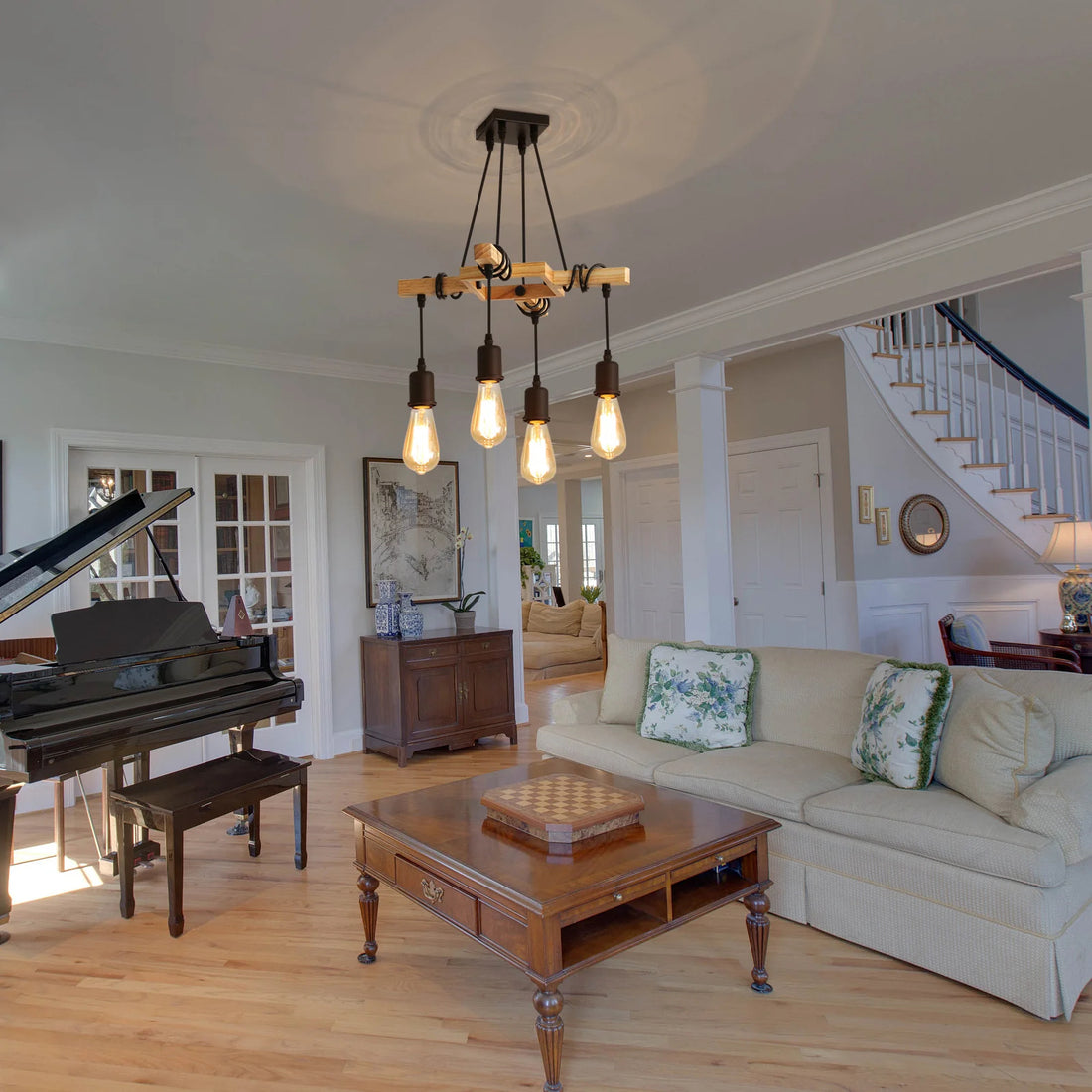 Con quattro lampadine E27 (non incluse), questa lampada a sospensione offre un'illuminazione potente e adattabile. Perfetto per illuminare con stile il soggiorno, la sala da pranzo o il ristorante. Aggiungi un'atmosfera calda e accogliente ad ogni momento.