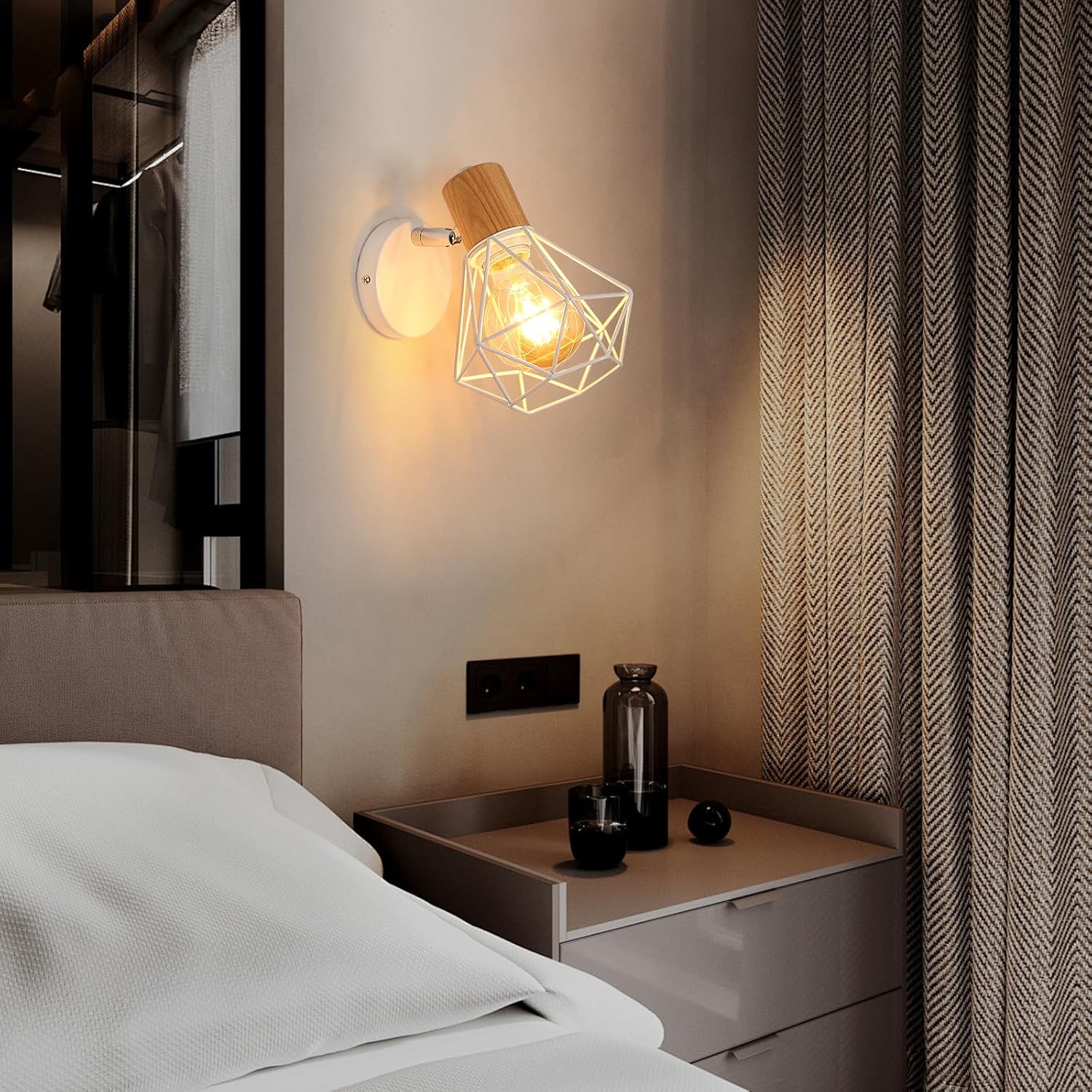 Questa lampada da parete dallo stile retrò industriale è dotata di un paralume a griglia bianca abbinato a una base in legno naturale. La luce si diffonde armoniosamente attraverso la struttura aperta, creando un’atmosfera calda e accogliente, perfetta per aggiungere un tocco decorativo ai tuoi ambienti.