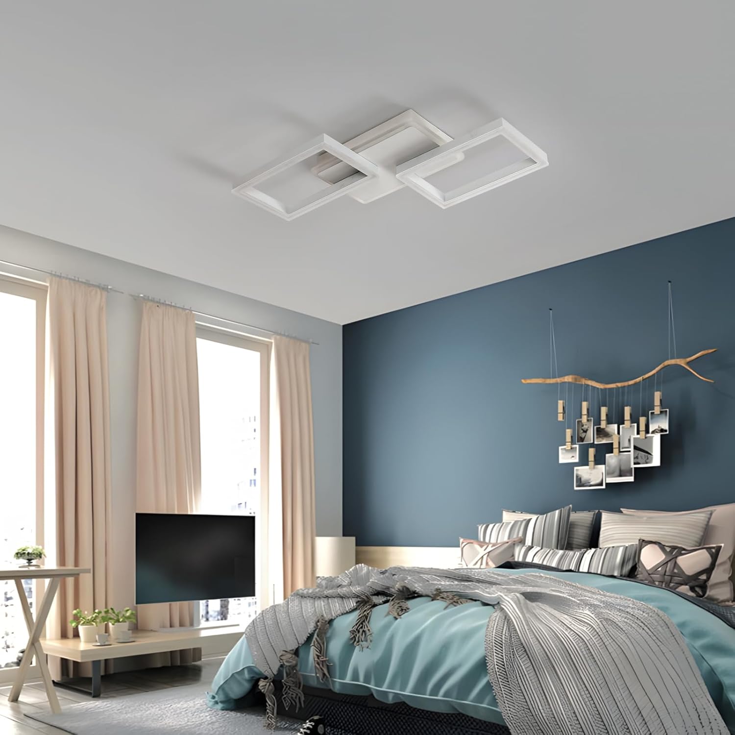 Questa plafoniera LED presenta una struttura quadrata a doppio livello, ideale per ambienti moderni e contemporanei.