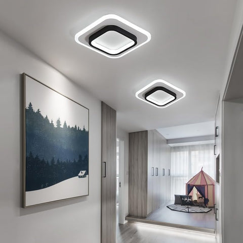 Lampada da soffitto dal design geometrico creativo, che abbina elegantemente il bianco e il nero. L'elegante combinazione garantisce un effetto visivo perfetto. La sovrapposizione dei doppi quadrati crea una tridimensionalità, infondendo nuova vitalità alla stanza.