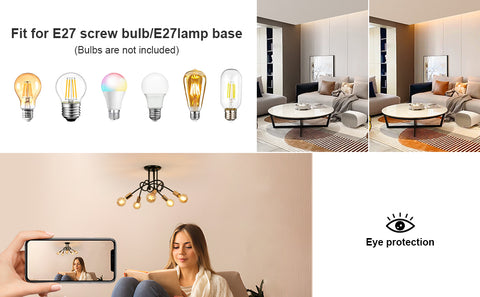 5 attacchi E27, max 60W per lampadina, lampadina standard, compatibile con LED, Edison, CFL, può essere utilizzata liberamente anche con telecomando dimmerabile e lampadine. La combinazione di lampadine diverse produrrà effetti di luce diversi. (Senza lampadine)
