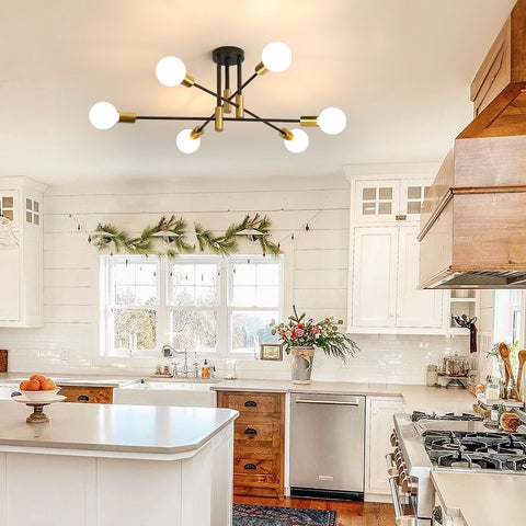 Il lampadario di metà secolo, con il suo corpo lampada nero, la coppa lampada dorata e la luce lineare, oltre a completare l'ambiente, aggiungerà stile e creerà un'atmosfera perfetta. La manovella di questa lampada per l'installazione della lampadina può ruotare di 180 gradi in orizzontale, così puoi trovare la forma che preferisci.